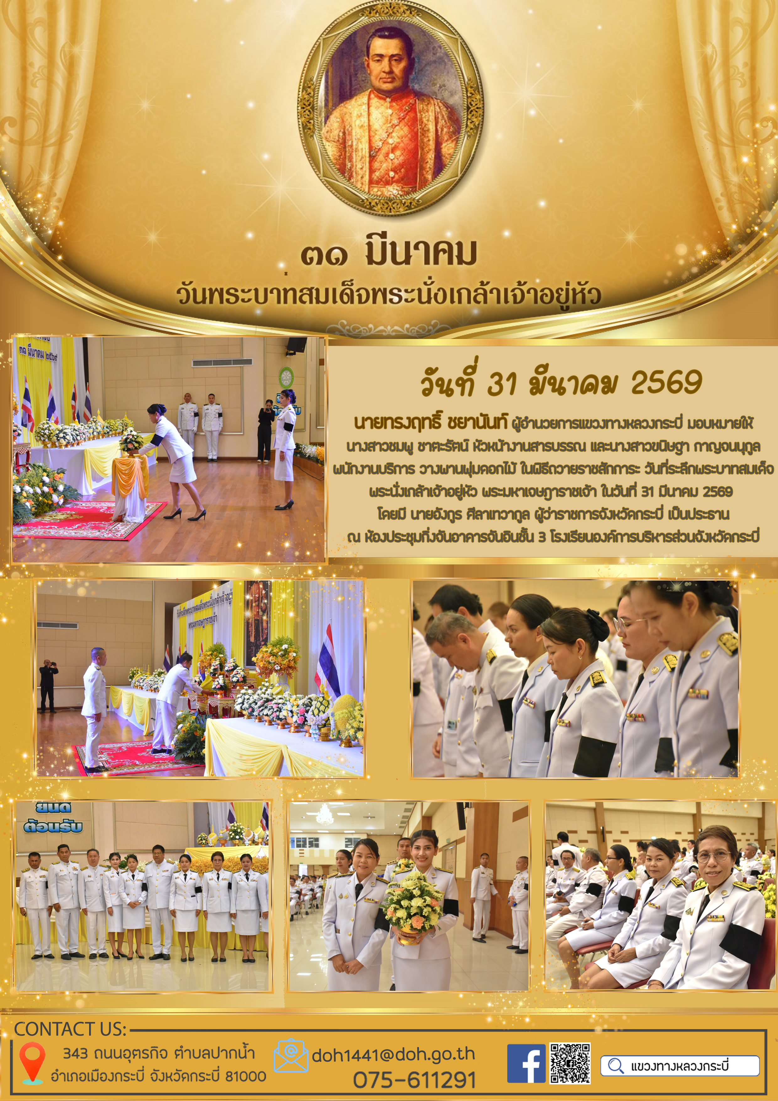 แขวงทางหลวงกระบี่ ร่วมกับหน่วยงานในสังกัดกระทรวงคมนาคมเป็นเจ้าภาพในการประกอบพิธีธรรมสวดพระอภิธรรม เพื่ออุทิศถวายพระราชกุศลแด่สมเด็จพระนางเจ้าสิริกิติ์ พระบรมราชินีนาถ พระบรมราชชนนีพันปีหลวง