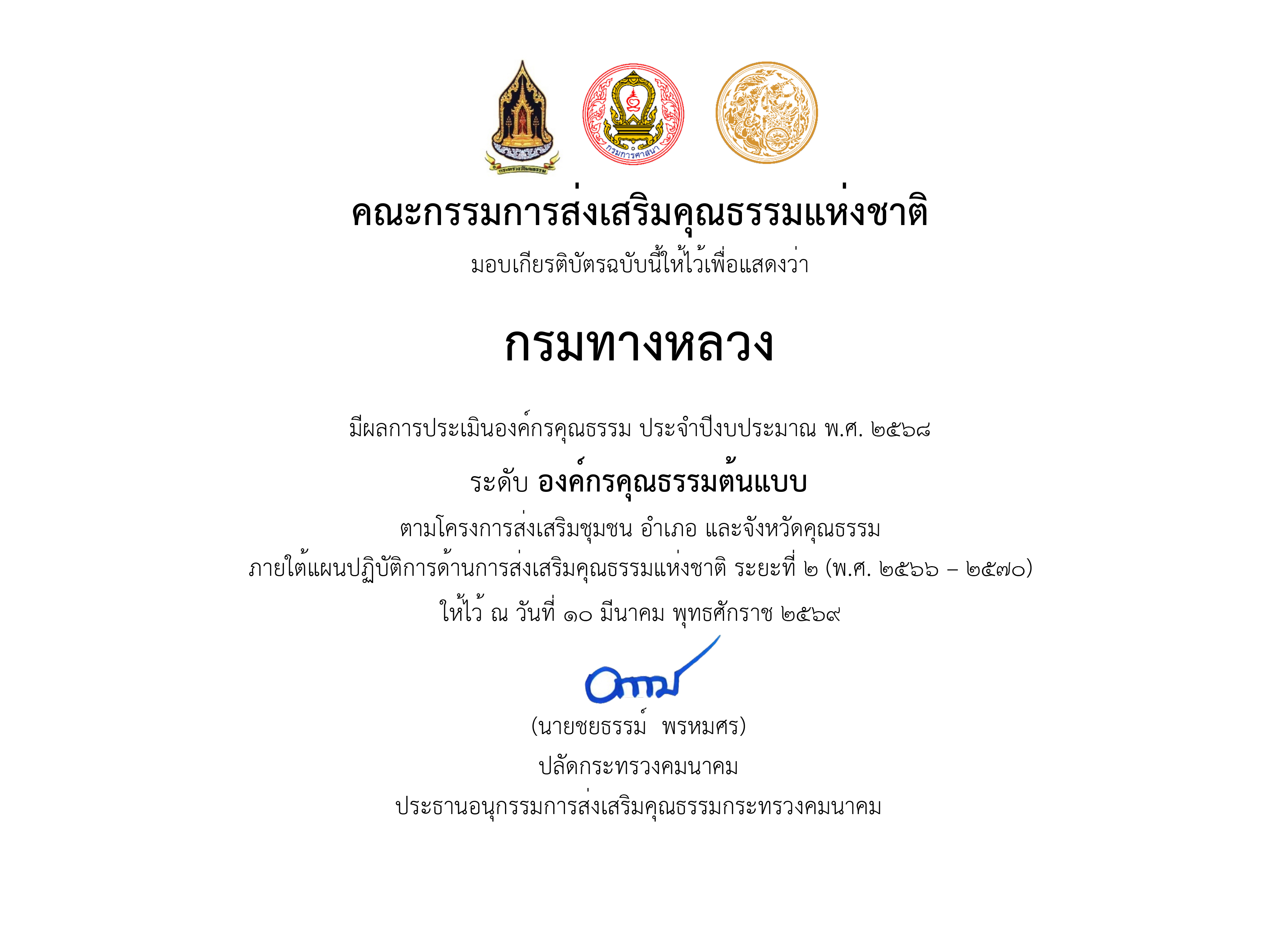 กรมทางหลวง ได้รับการยกย่องเป็น "องค์กรคุณธรรมต้นแบบ"