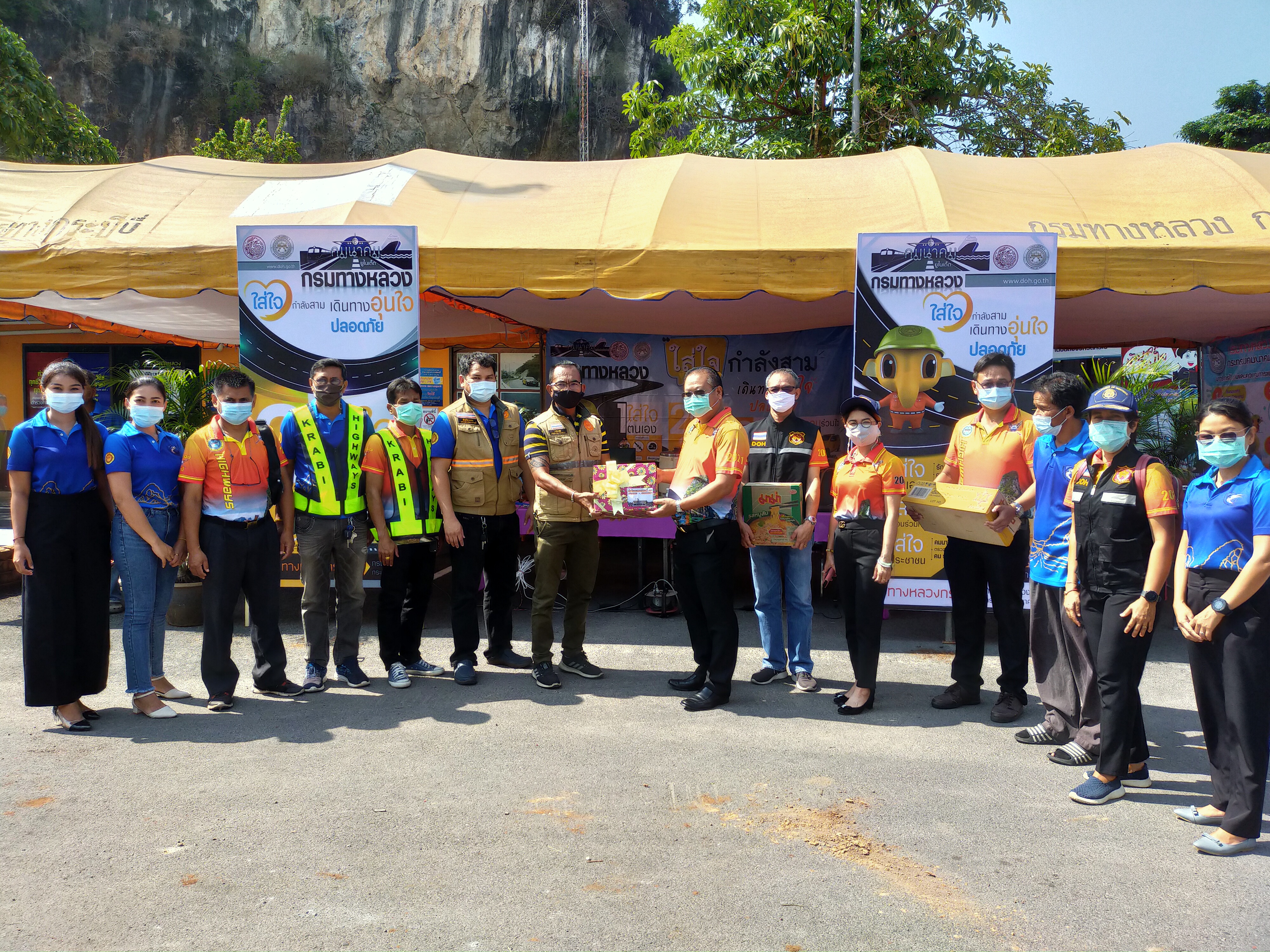 วันที่ 9 เมษายน 2564 เวลา 9.00 น. นายคงฤทธิ์ ปัญญาแก้ว ผู้อำนวยการสำนักงานทางหลวงที่ 17 และคณะ ตรวจเยี่ยมพร้อมมอบสิ่งของแก่เจ้าหน้าที่ประจำจุดอำนวยความสะดวกและปลอดภัยในช่วงเทศกาลสงกรานต์ 2564 ณ สามแยกวัดถ้ำเสือ อำเภอเมืองจังหวัดกระบี่ โดยมี นายสุวัฒชัย สิงหพันธ์ รองผู้อำนวยการแขวง ทางหลวงกระบี่ ฝ่ายปฏิบัติการ ข้าราชการและเจ้าหน้าที่แขวงทางหลวงกระบี่ รับการตรวจเยี่ยม