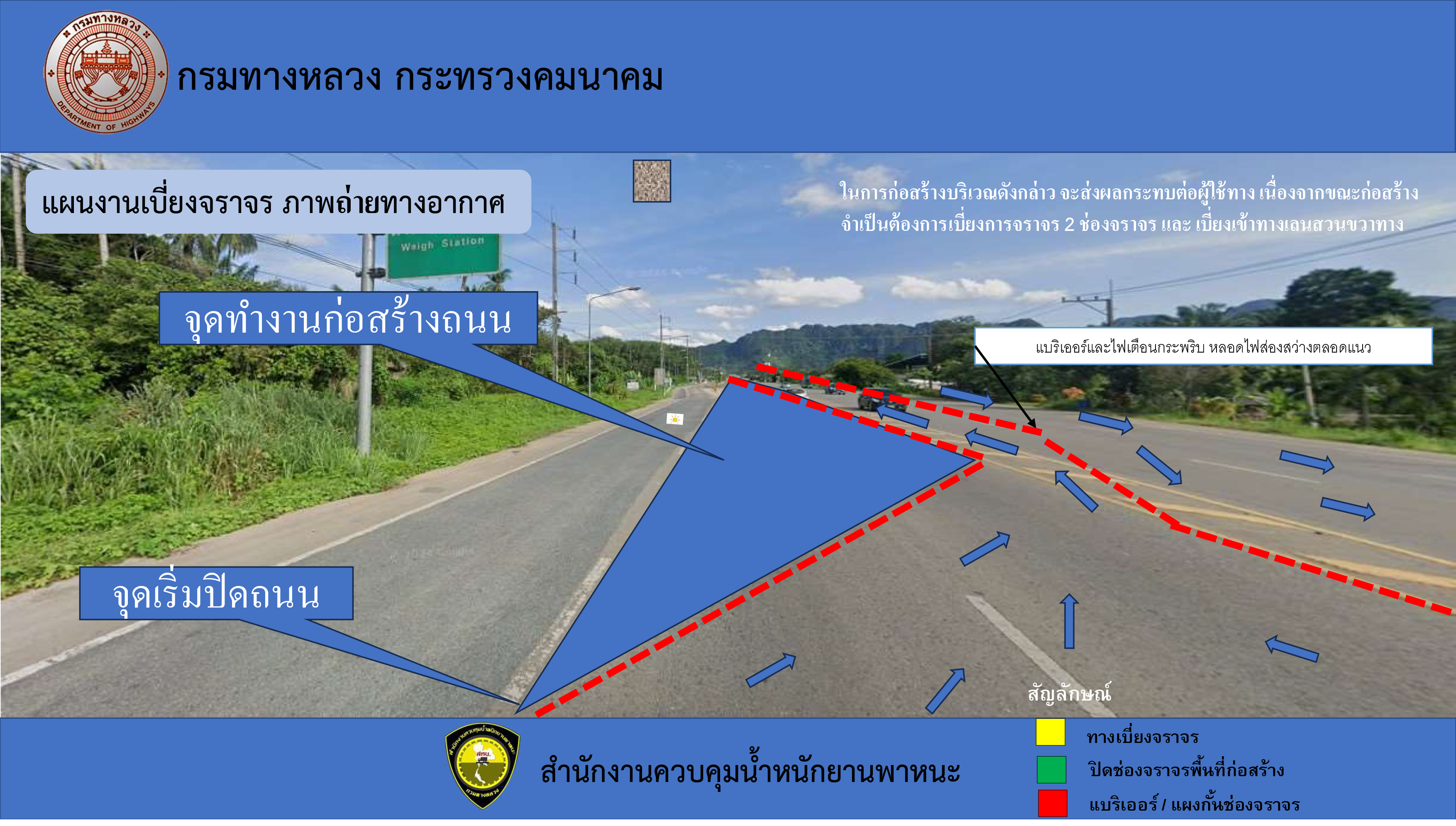 ข้อมูลข่าว : กรมทางหลวงจะทำการเบี่ยงการจราจรเพื่อก่อสร้างถนน